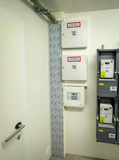Nous avons réalisé l'entièreté des installations électriques (groupe de comptage, électricité, éclairages des communs, et appartements.